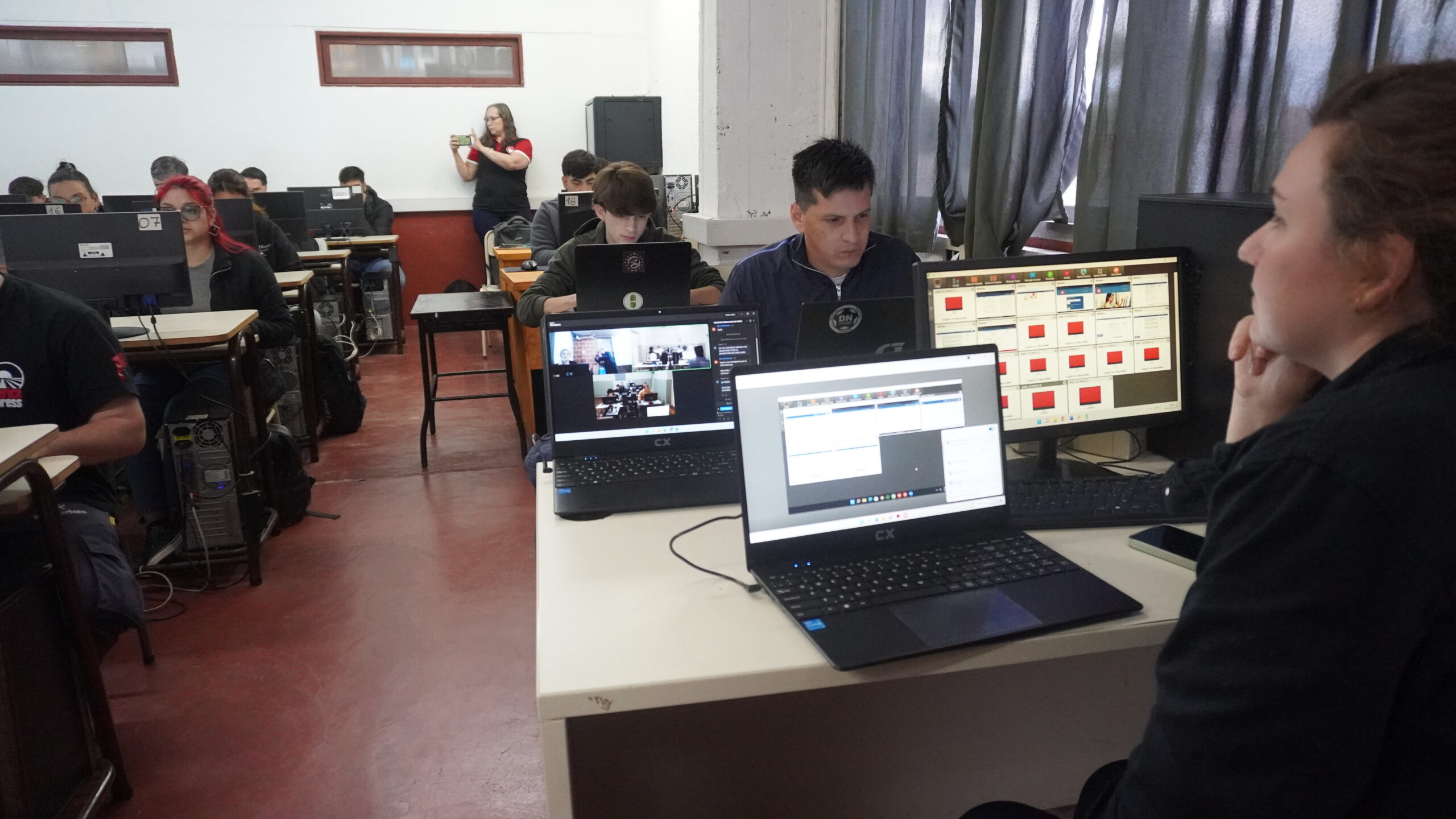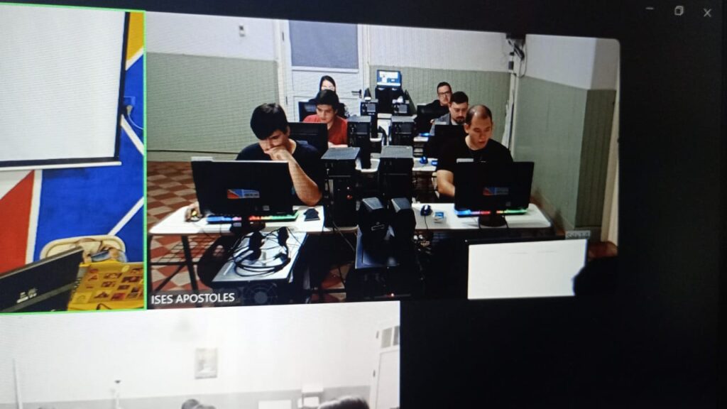 Los exámenes se llevan adelante bajo modalidad híbrida, con actividades simultáneas en las sedes de Posadas y Apóstoles, lo que permite que estudiantes y docentes trabajen de manera integrada sin limitar la interacción formativa. Esta dinámica se sostiene a partir de un sistema de conexión directa entre ambas sedes, que posibilita el acompañamiento permanente y la construcción de experiencias compartidas, potenciando la colaboración y la resolución conjunta de problemas.