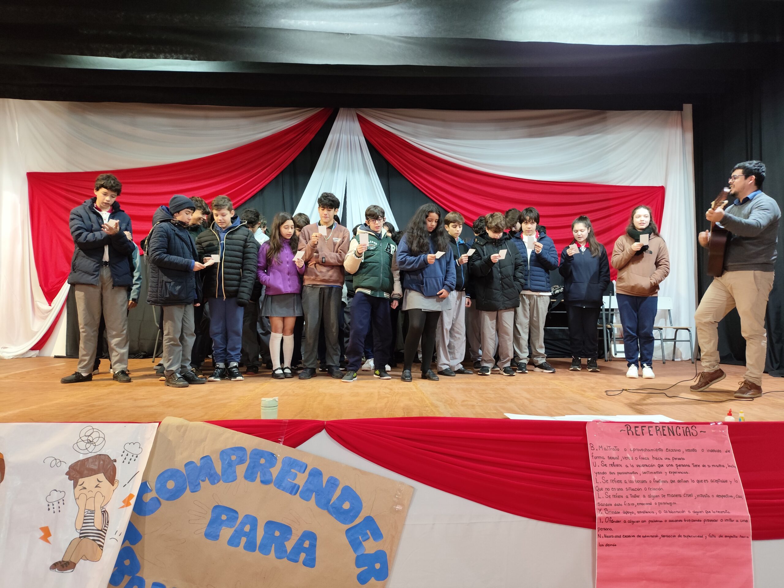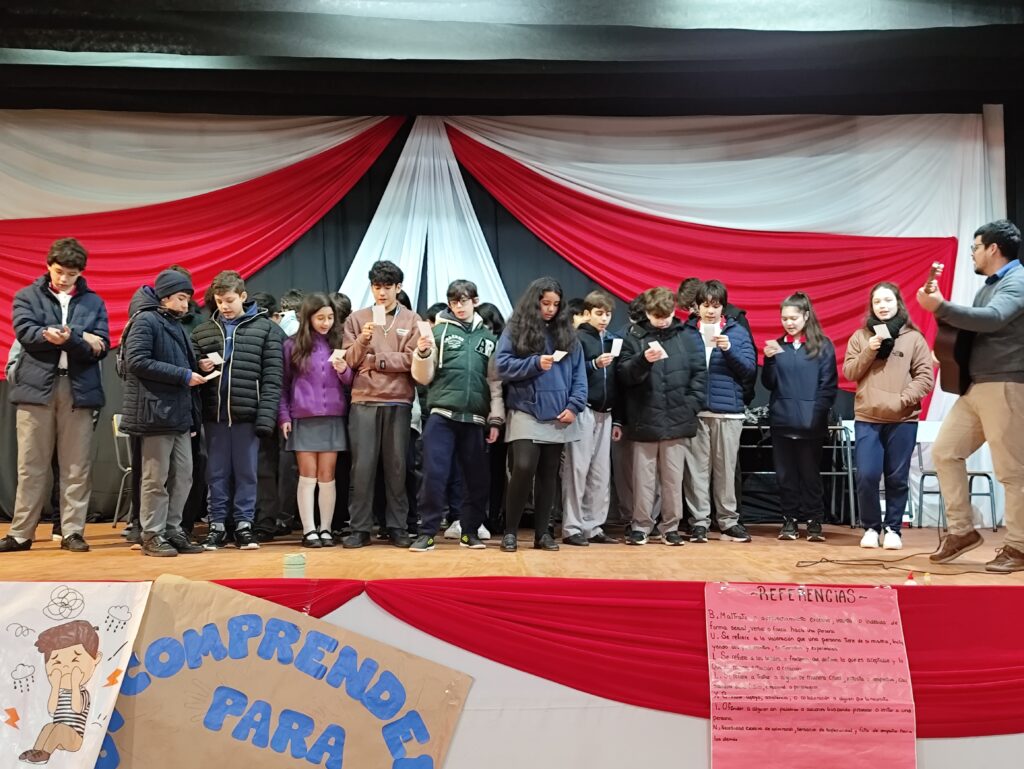 Durante las últimas semanas, los alumnos trabajaron de manera colaborativa en la producción de materiales y presentaciones creativas, que fueron compartidas en esta jornada final. Hubo dramatizaciones, canciones, juegos interactivos y espacios de reflexión, a través de los cuales los jóvenes expresaron su mirada sobre el bullying, sus causas, consecuencias y —sobre todo— las posibles formas de prevenirlo.
