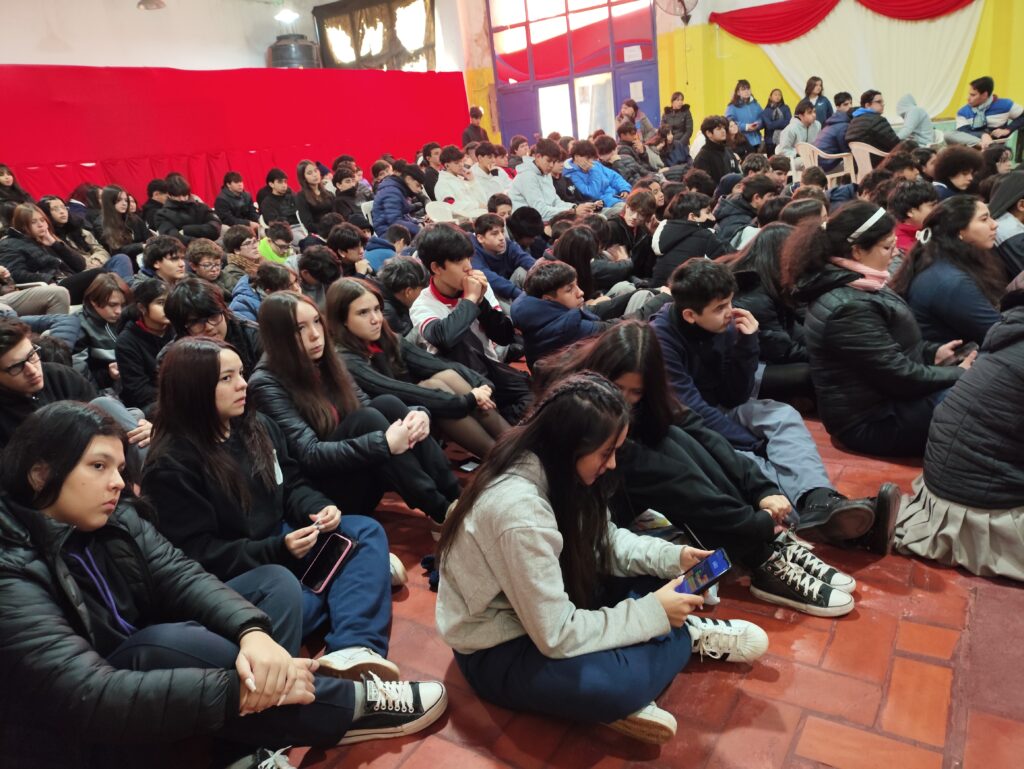 La actividad se desarrolló en el Salón de Usos Múltiples de la institución, con la presencia de estudiantes y docentes, quienes se sumaron a una propuesta pensada no solo para sensibilizar, sino también para promover la construcción de vínculos más sanos y empáticos dentro del ámbito escolar.