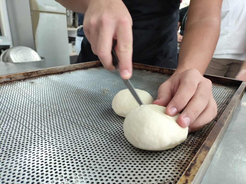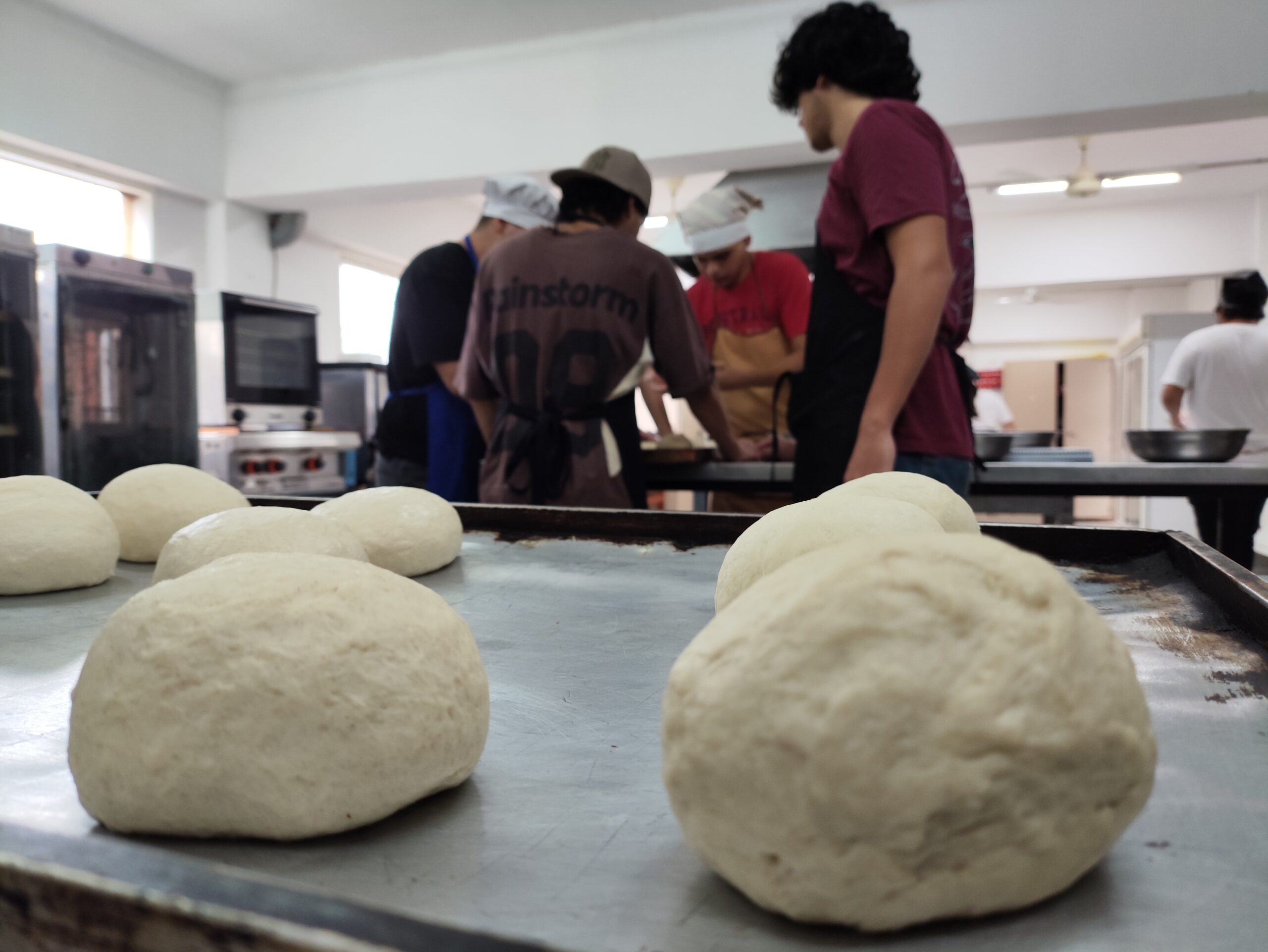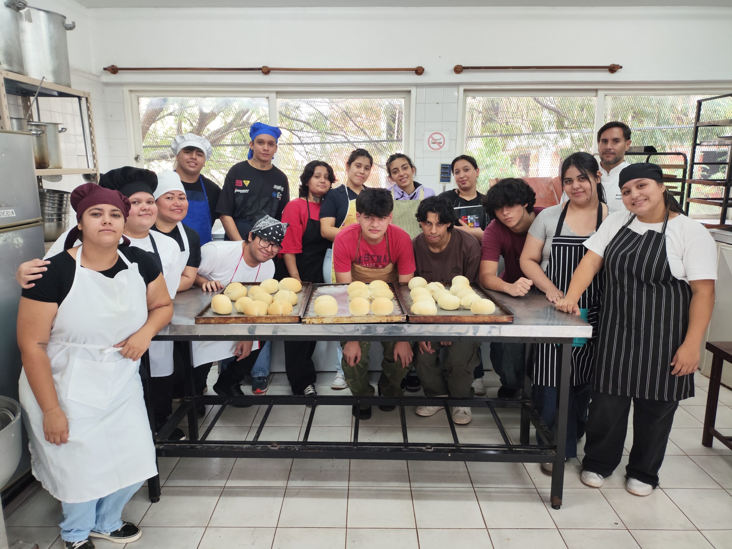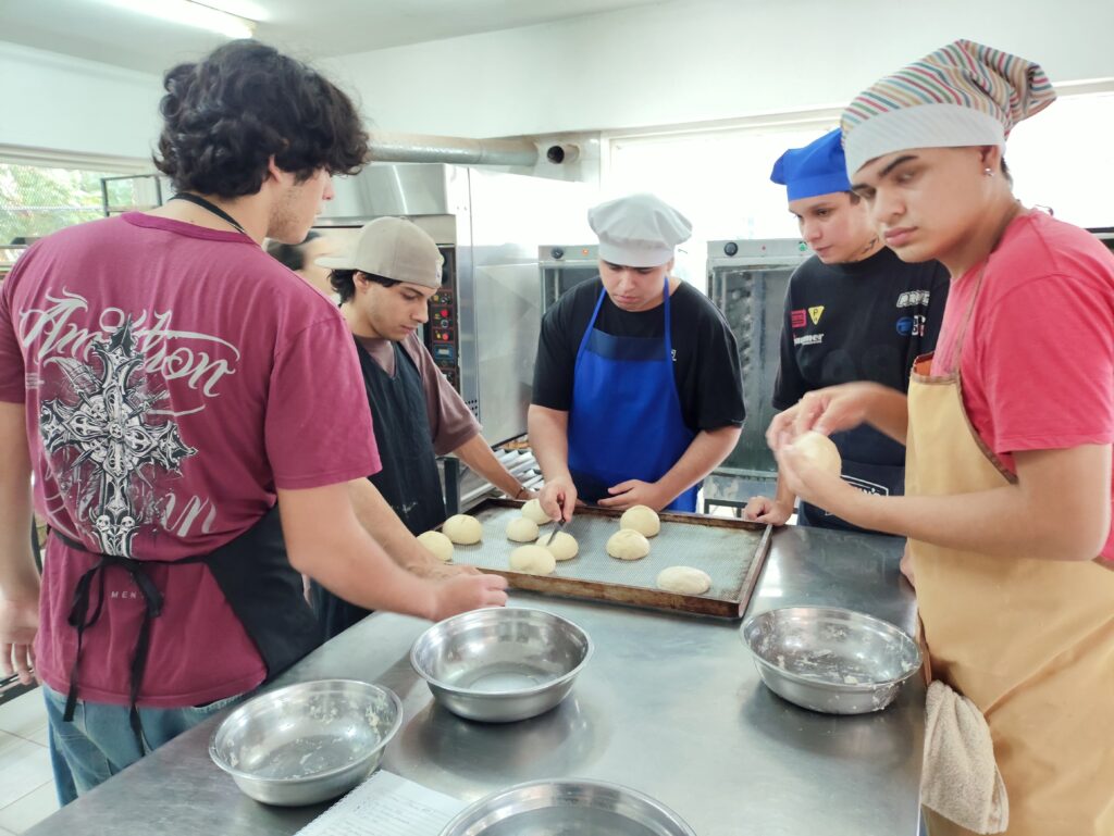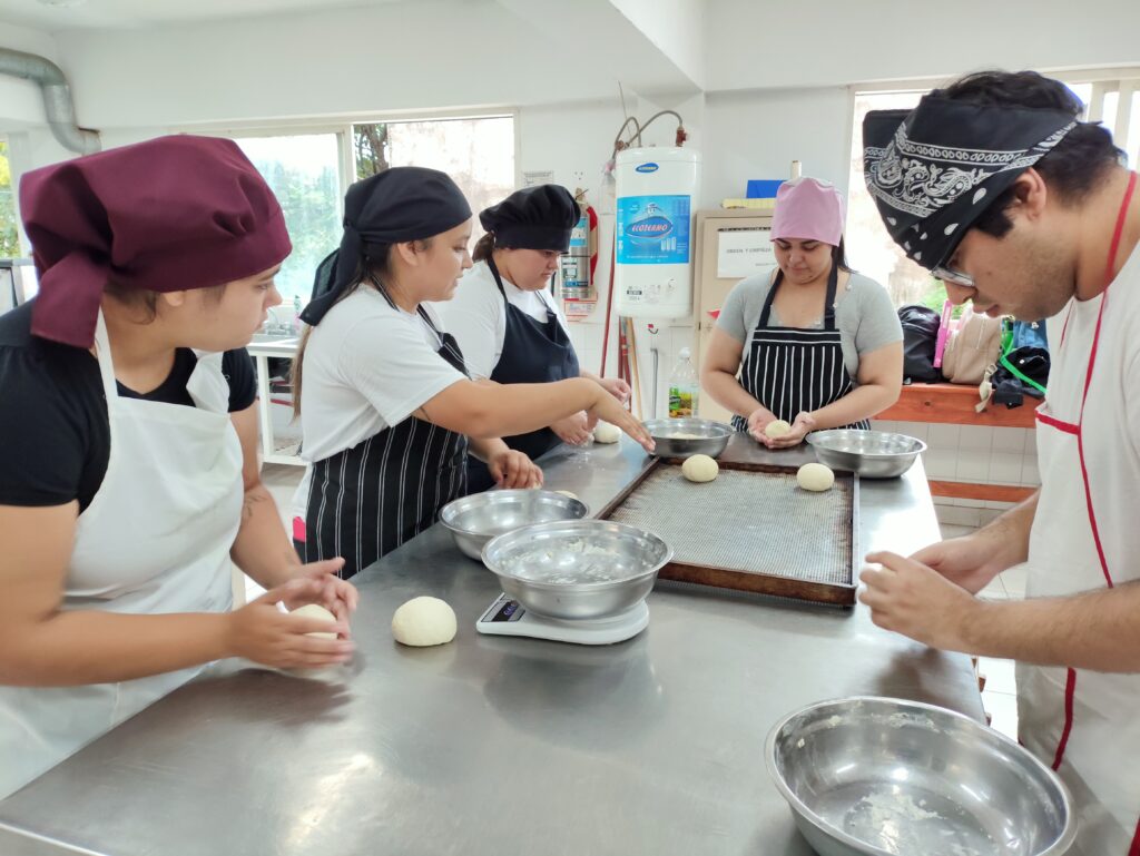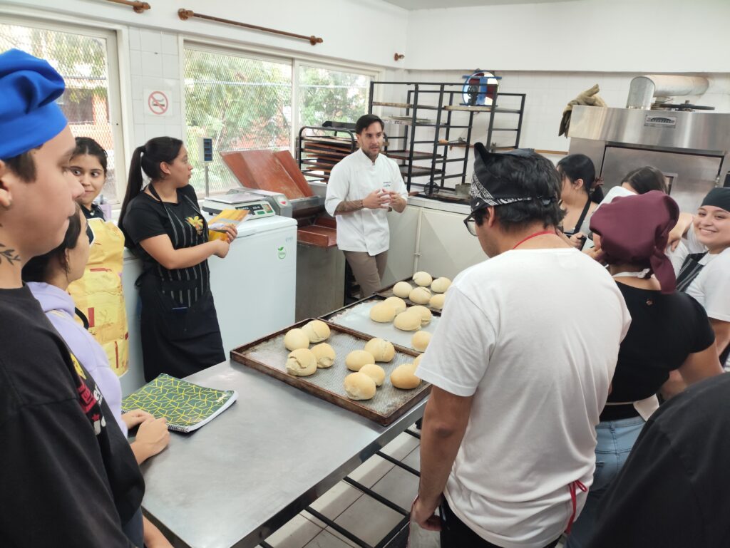 La jornada estuvo guiada por el profesor Maxi Pazzos, quien acompañó a los ingresantes en el descubrimiento de las recetas base, fundamentales para comprender los procesos que dan vida a uno de los pilares de la cocina: el pan. Desde la selección de ingredientes hasta el amasado, la fermentación y la cocción, cada instancia fue abordada como una oportunidad de aprendizaje integral.